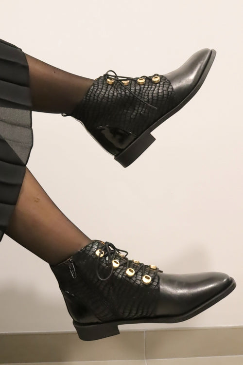 Botas de Mulher em Pele com Cordão e Fecho | Daydoc Linz - N78810