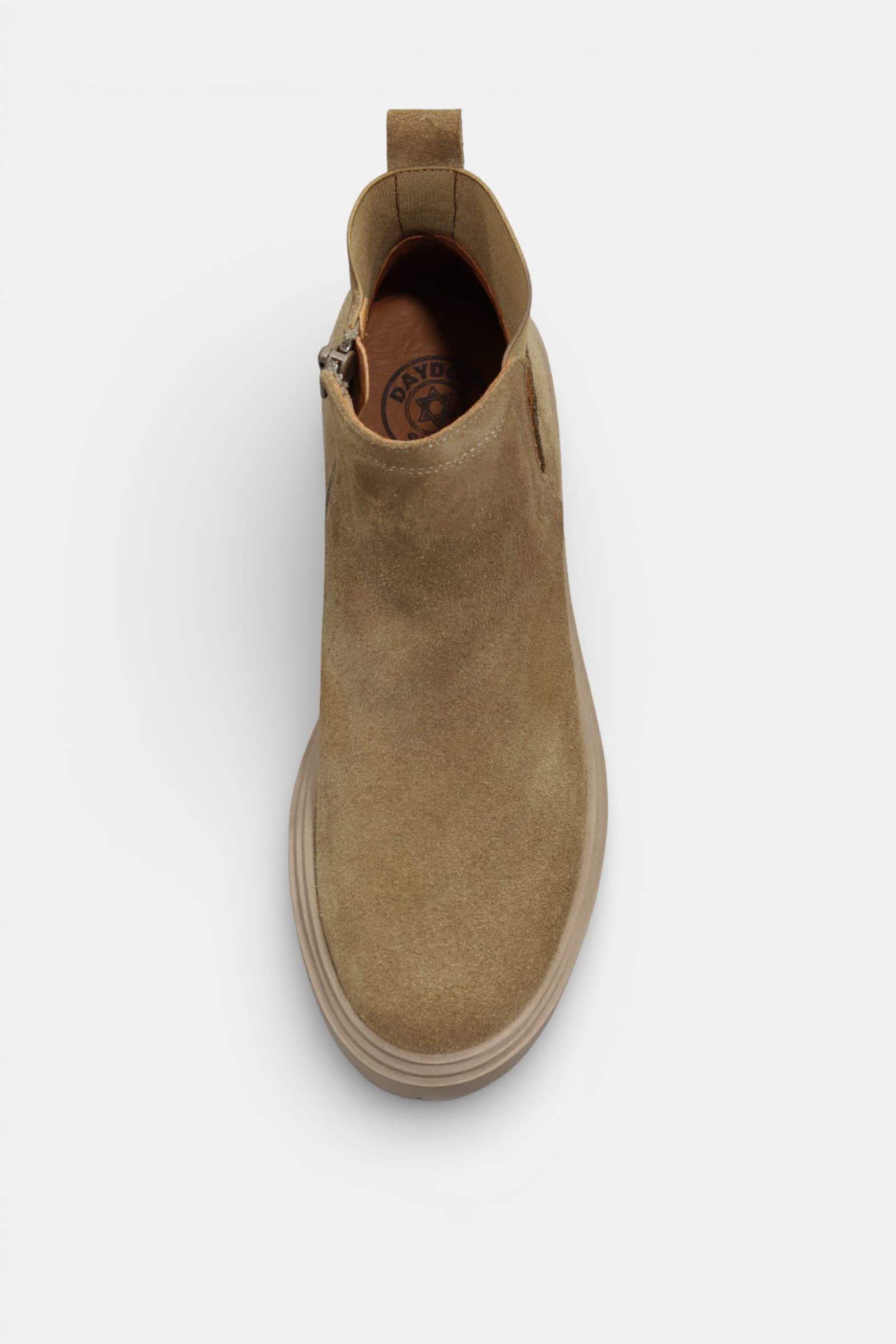 Prática, leve e cheia de estilo. Esta bota em camurça camel com elástico adapta-se facilmente ao pé, oferecendo conforto imediato. Apesar do aspeto robusto, surpreende pela leveza e pela harmonia perfeita entre a sola e a gáspea, criando um look casual moderno e atual.
