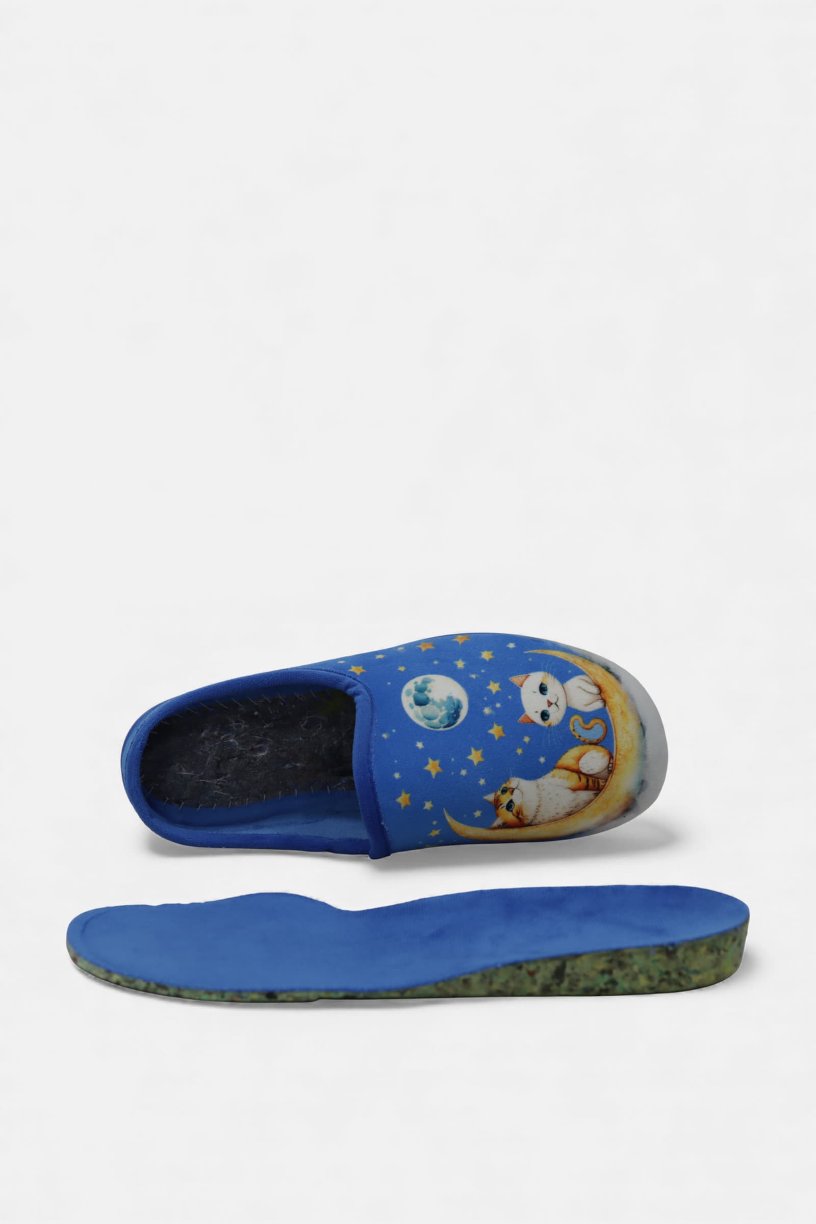 A gáspea apresenta um tecido estampado de gatos, conferindo um toque divertido, único e cheio de personalidade. O par ideal para quem procura bem-estar, qualidade e estilo no dia a dia.