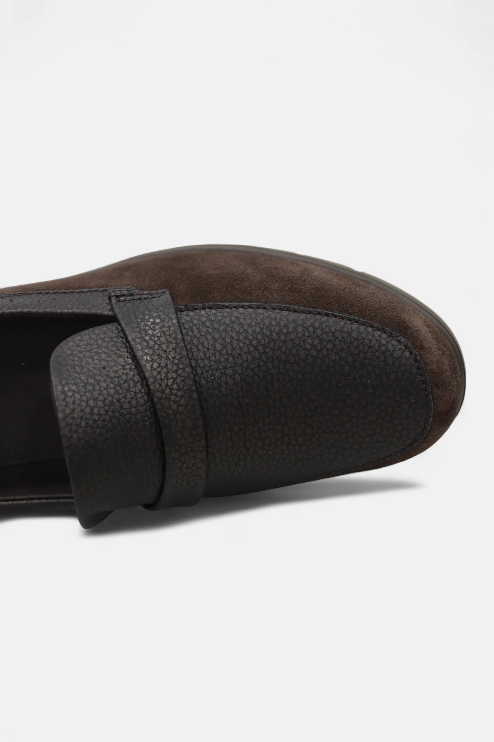 Este mocassim de senhora é fabricado em Portugal, com camurça macia de alta qualidade e detalhes em pele anilina, que conferem um acabamento distinto e sofisticado.