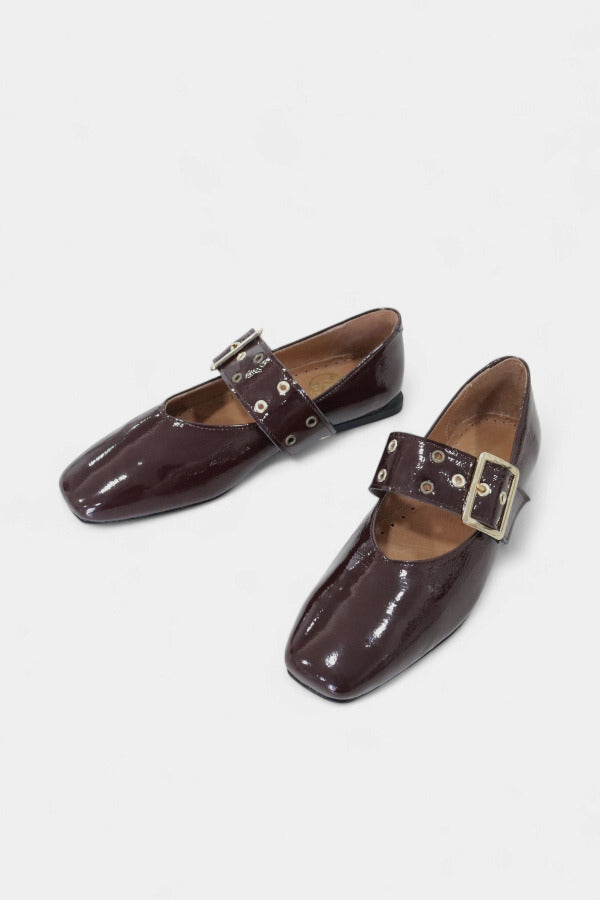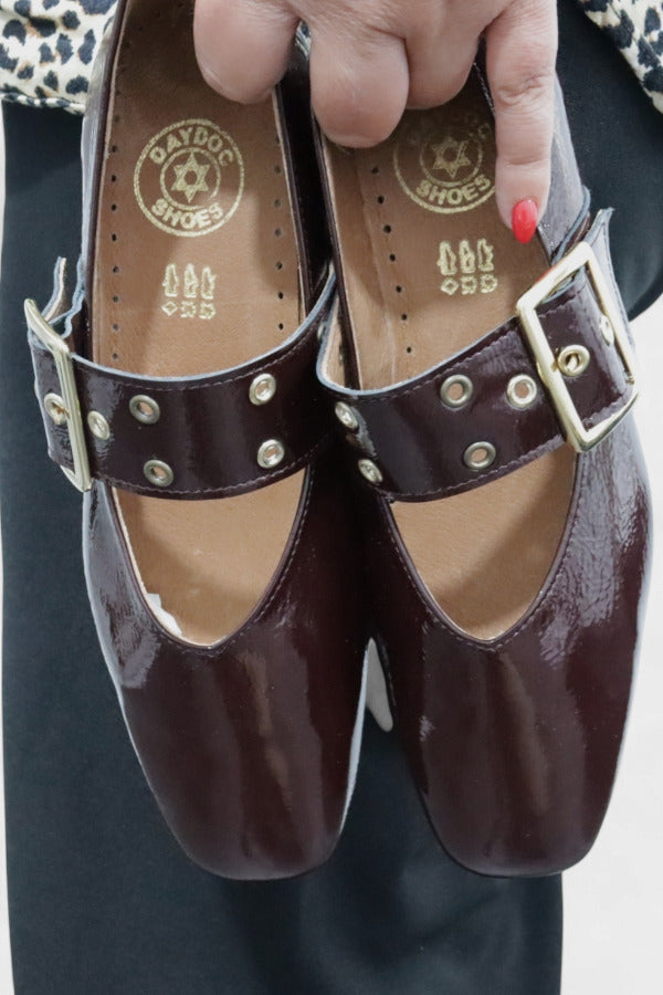Sabrinas em Pele Verniz Bordô com Fivela | Daydoc Bordéus - 5801