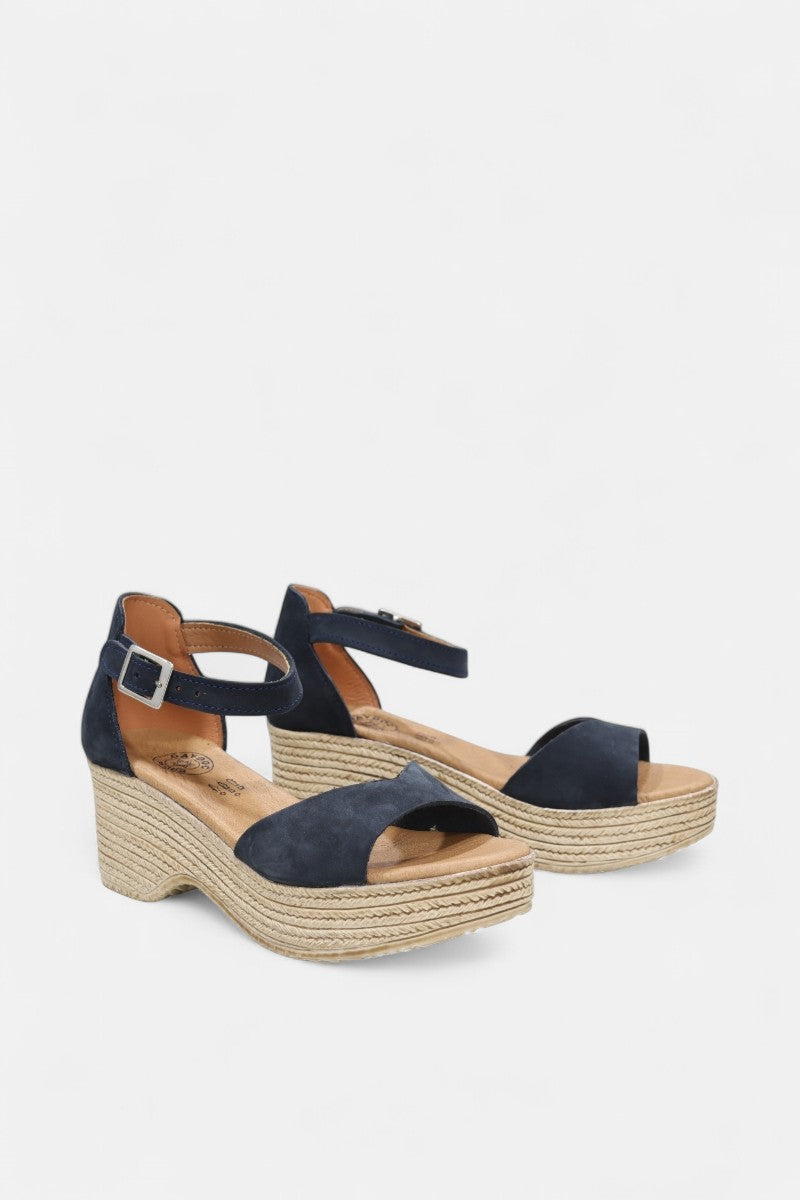 Sola: Imitação de corda, cunha 8 cm, compensada 3 cm, com rasto borracha