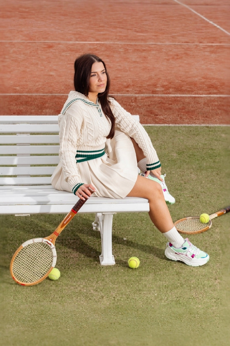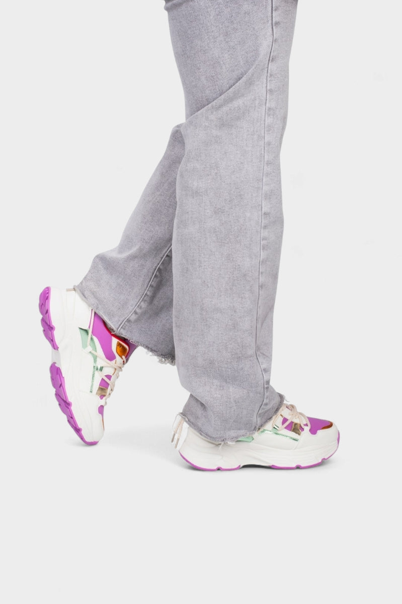 Moderno, estiloso e versátil: O ténis de mulher MADEE na cor branca com uma combinação de cores frescas, perfeito para completar o seu look primaveril.