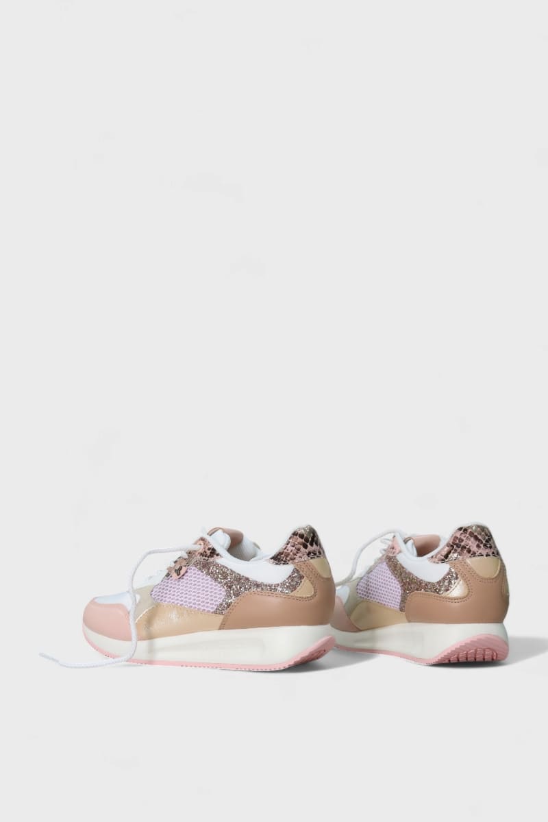 Apresentam malha respirável para maior frescura, palmilhas em látex que garantem amortecimento extra e um toque de sofisticação com detalhes em glitter, pele e camurça sintética. Os acabamentos em materiais metalizados conferem um brilho discreto e estilizado, ideal para um look casual chique.
