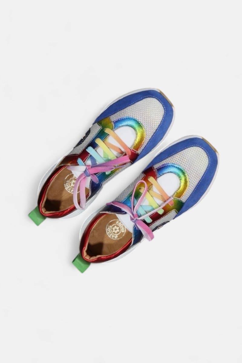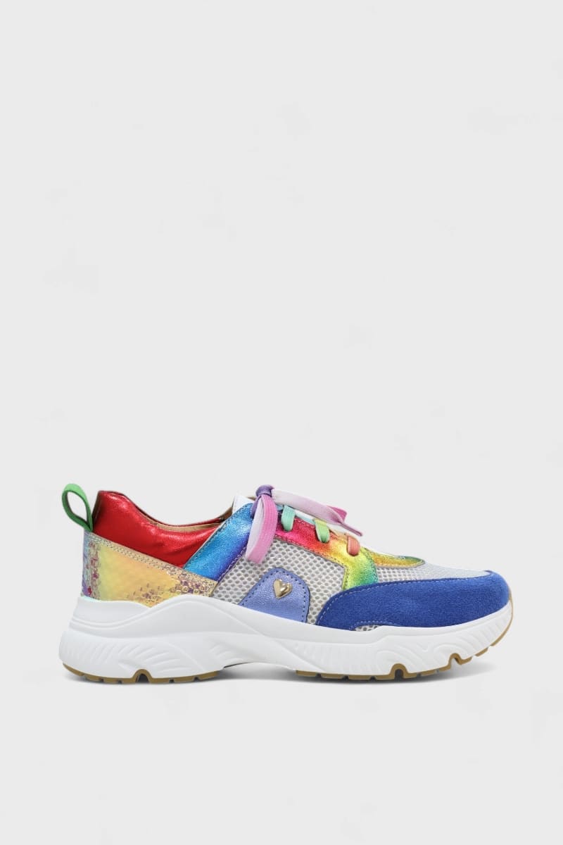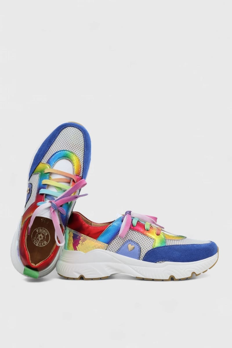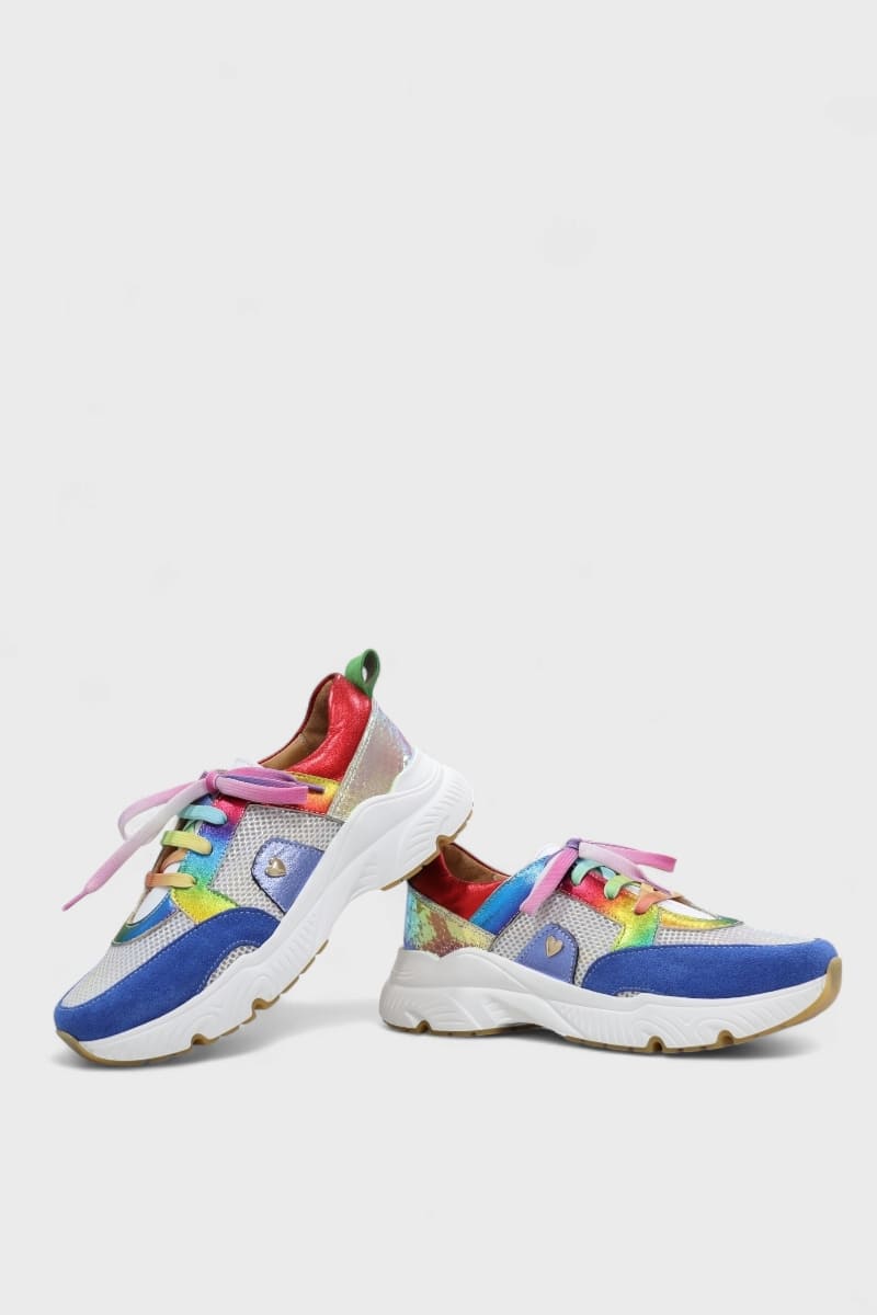 Seja o centro das atenções com os ténis BELÉM - ousados e cheios de personalidade! Confecionados em pele de alta qualidade, combinam materiais metalizados com efeito arco-íris e painéis em rede que garantem um visual fresco, moderno e transpirável. A sola grossa traz um toque urbano e atual, enquanto as palmilhas acolchoadas oferecem um conforto superior para o dia todo.