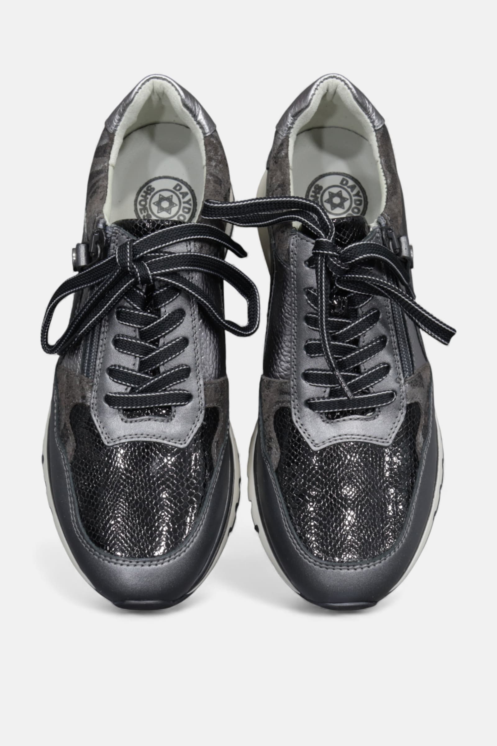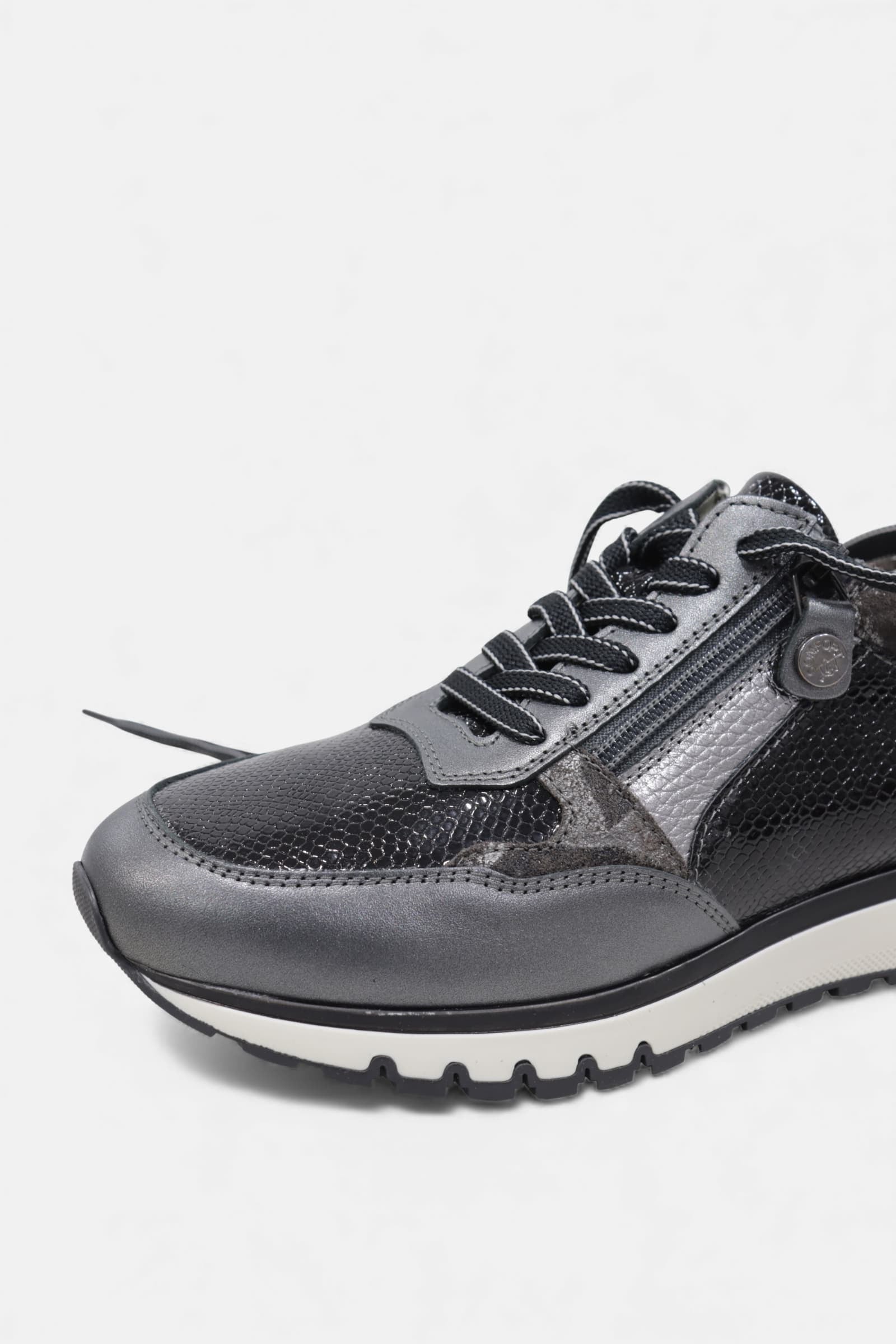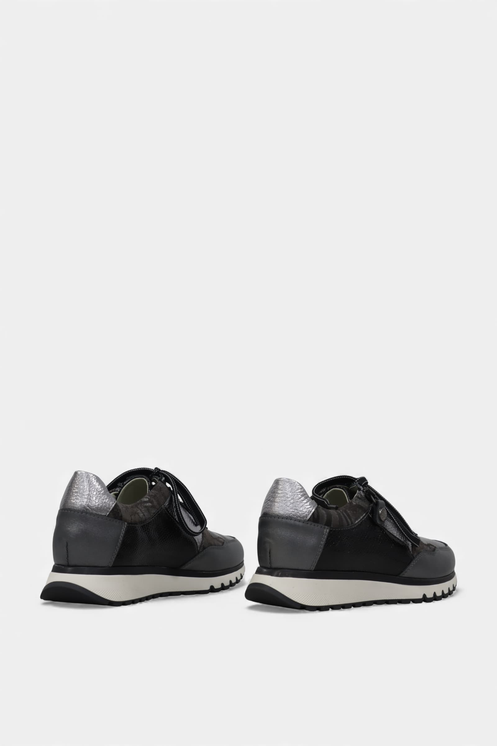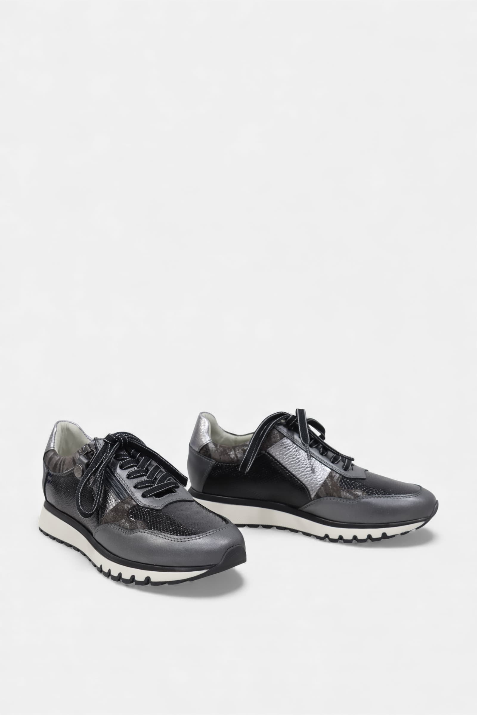 As sapatilhas de senhora em pele multicores e multimateriais em tons de cinza combinam sofisticação, estilo e funcionalidade num único modelo. A mistura harmoniosa de tonalidades cinzentas e preto, traz um toque moderno e elegante, tornando estas sapatilhas ideais para quem procura uma opção versátil e distinta para o dia a dia.