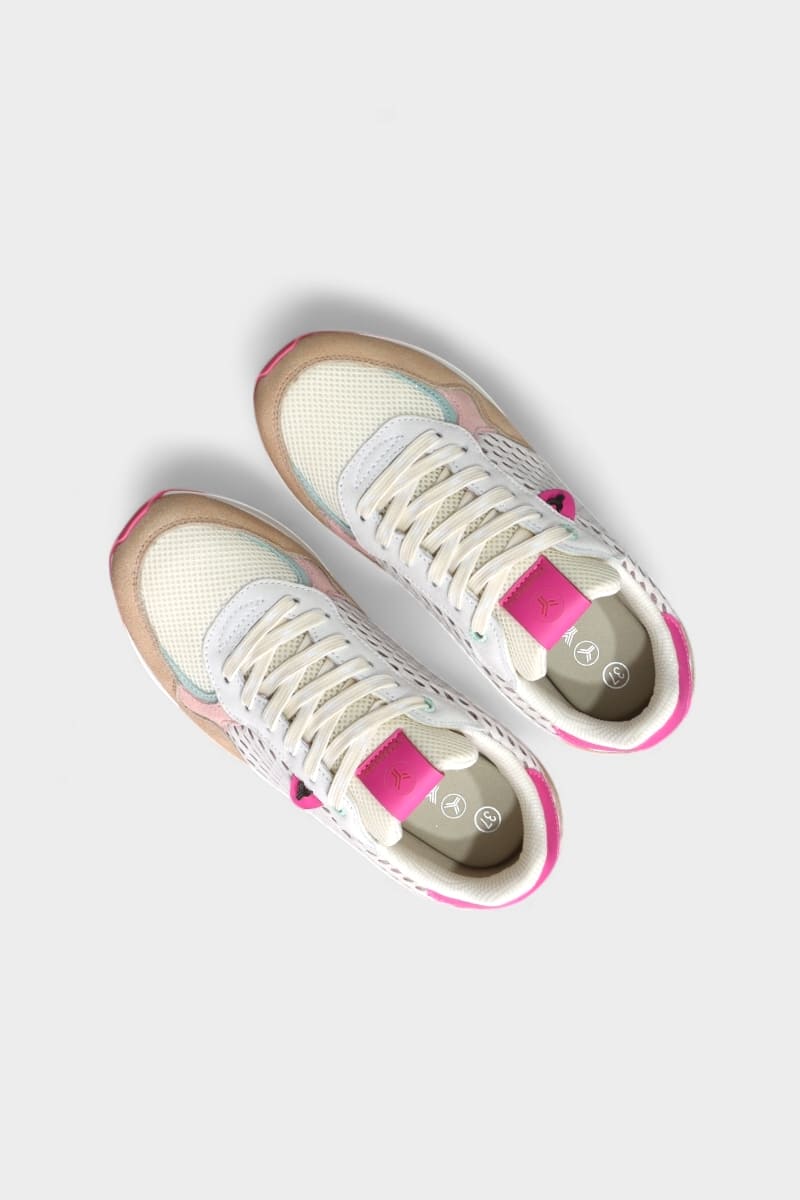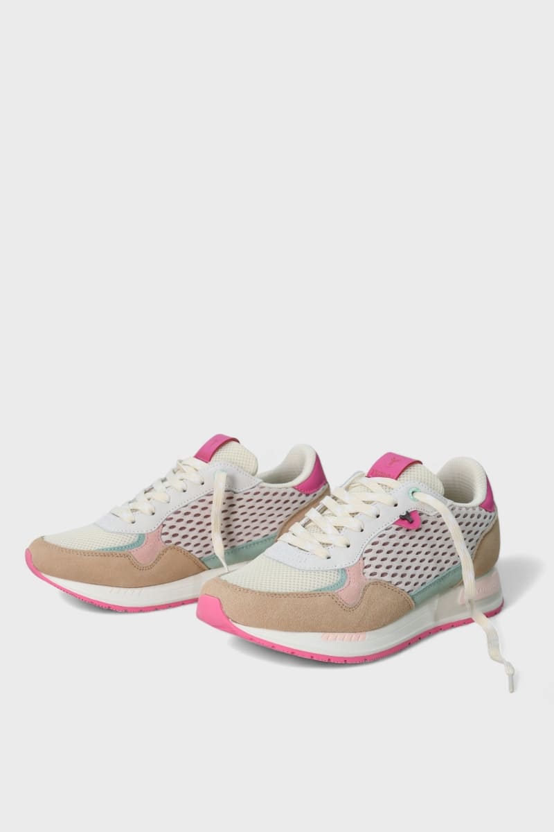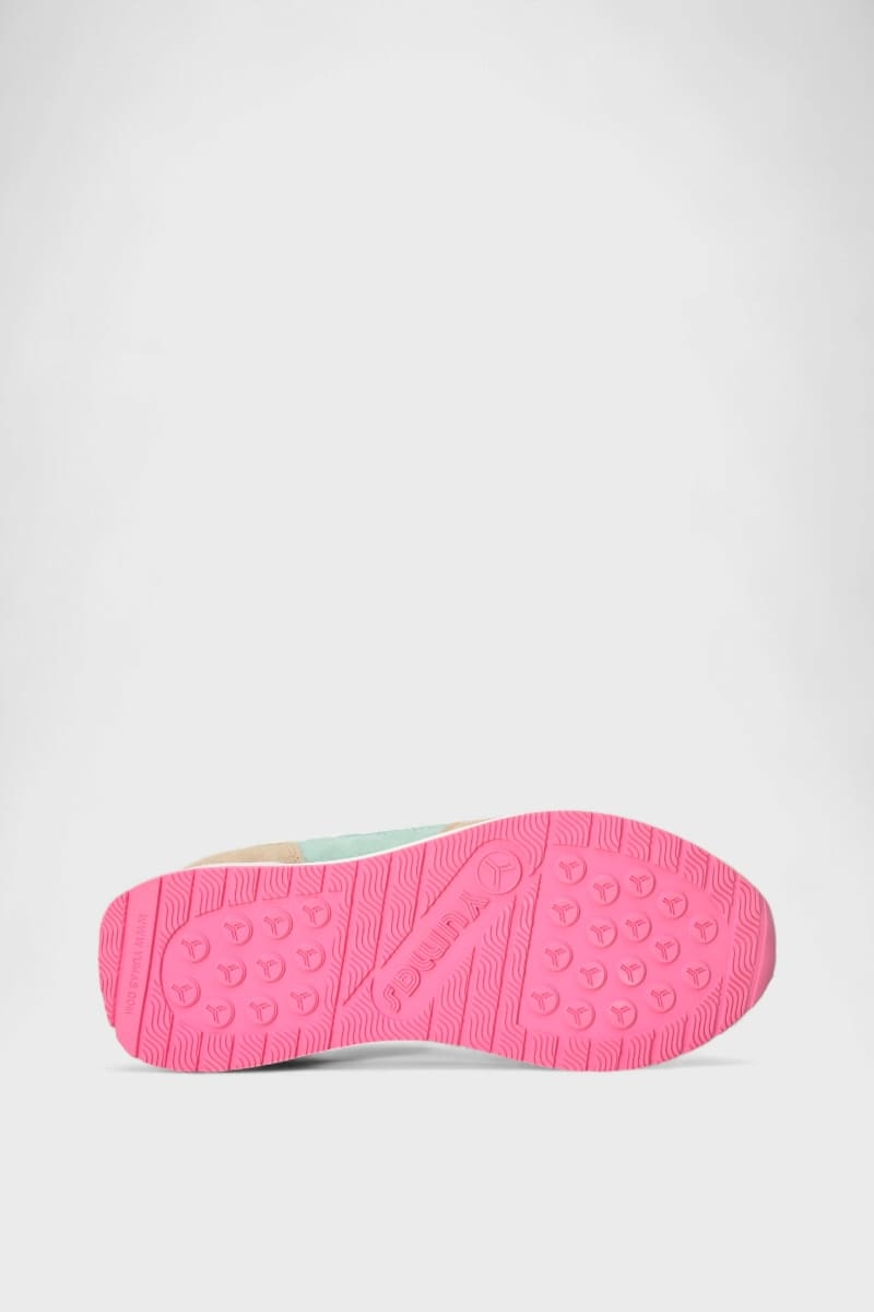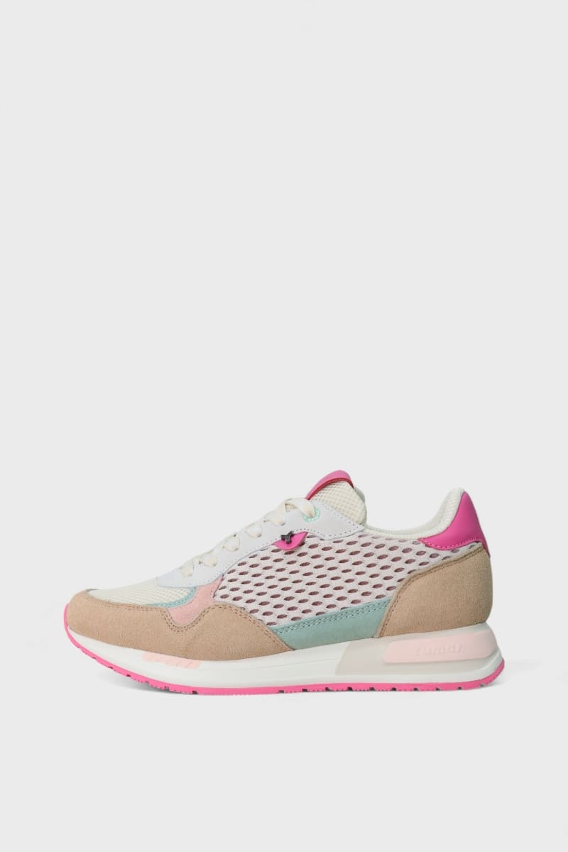Ténis de mulher DONIA multicor com uma paleta elegante de camurça bege, rosa, verde e fúcsia, perfeitos para dar um toque de cor e estilo ao look.