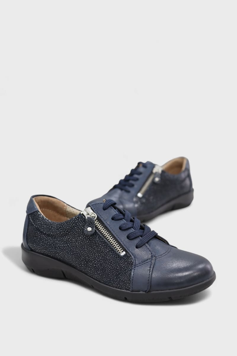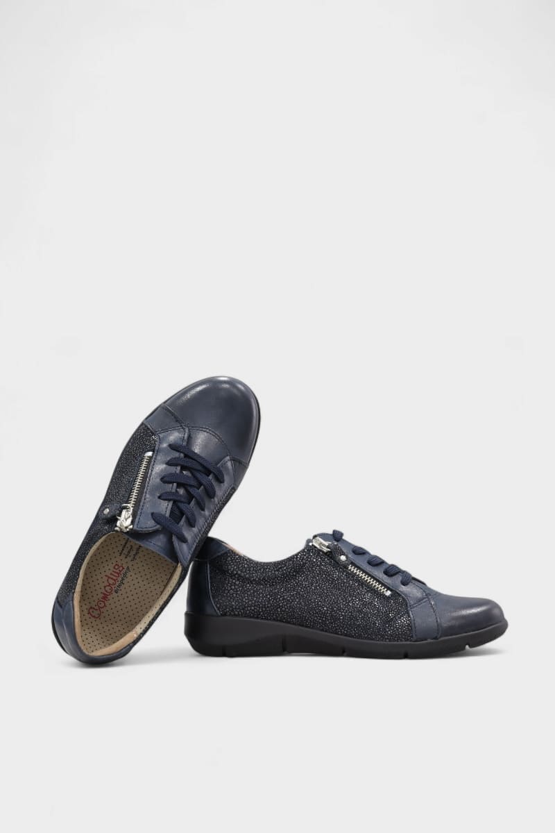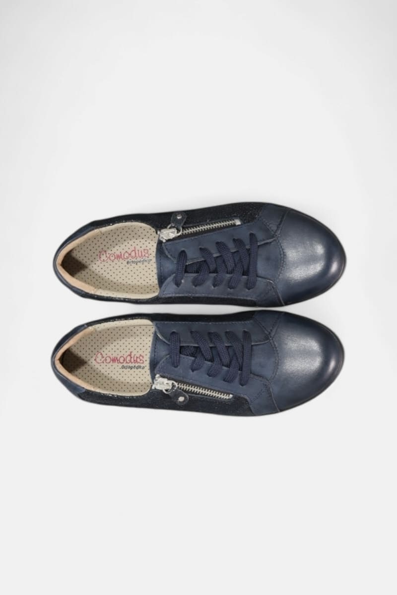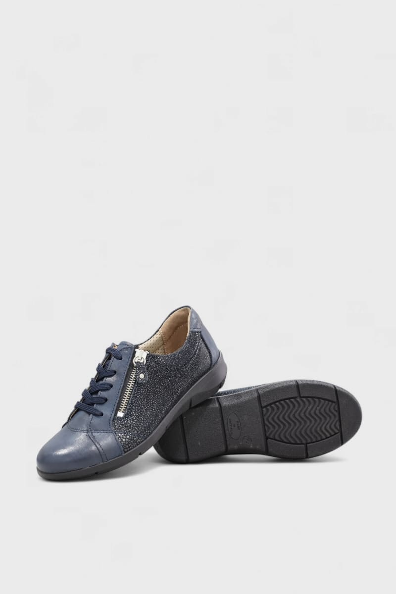 Ténis de Mulher em Pele Azul Lisa com Detalhes Decorados S7507