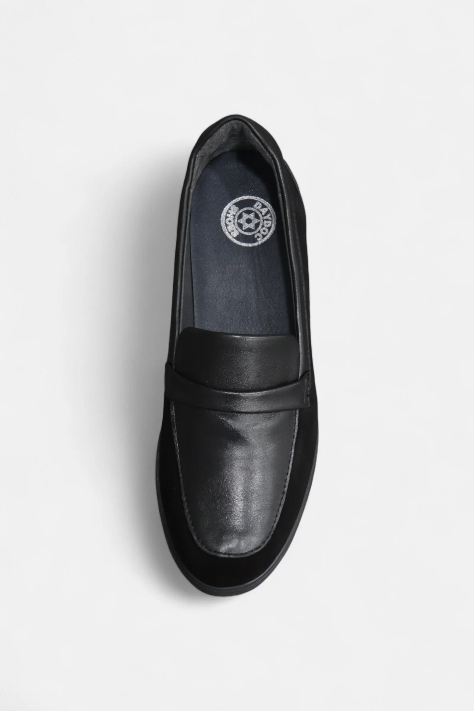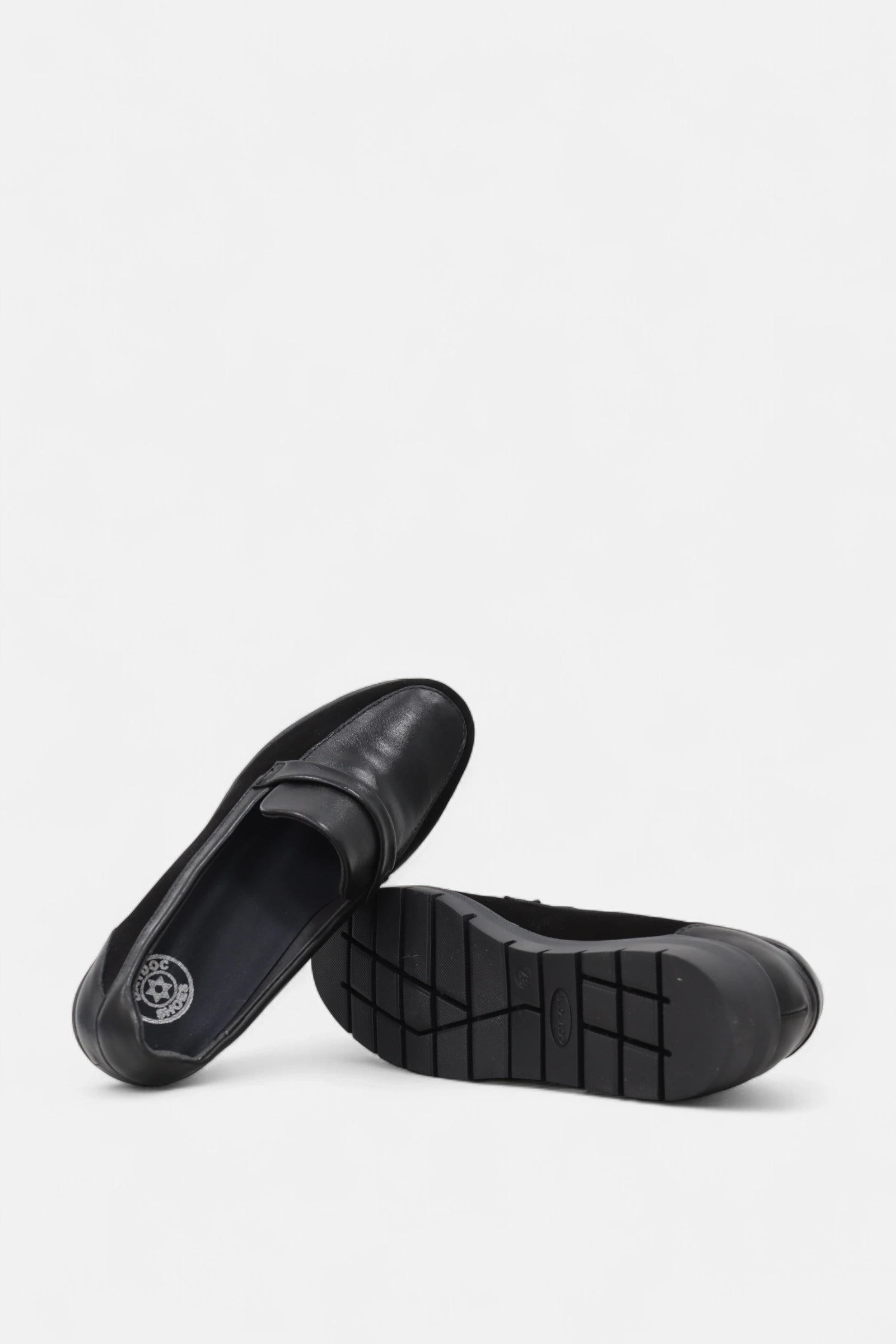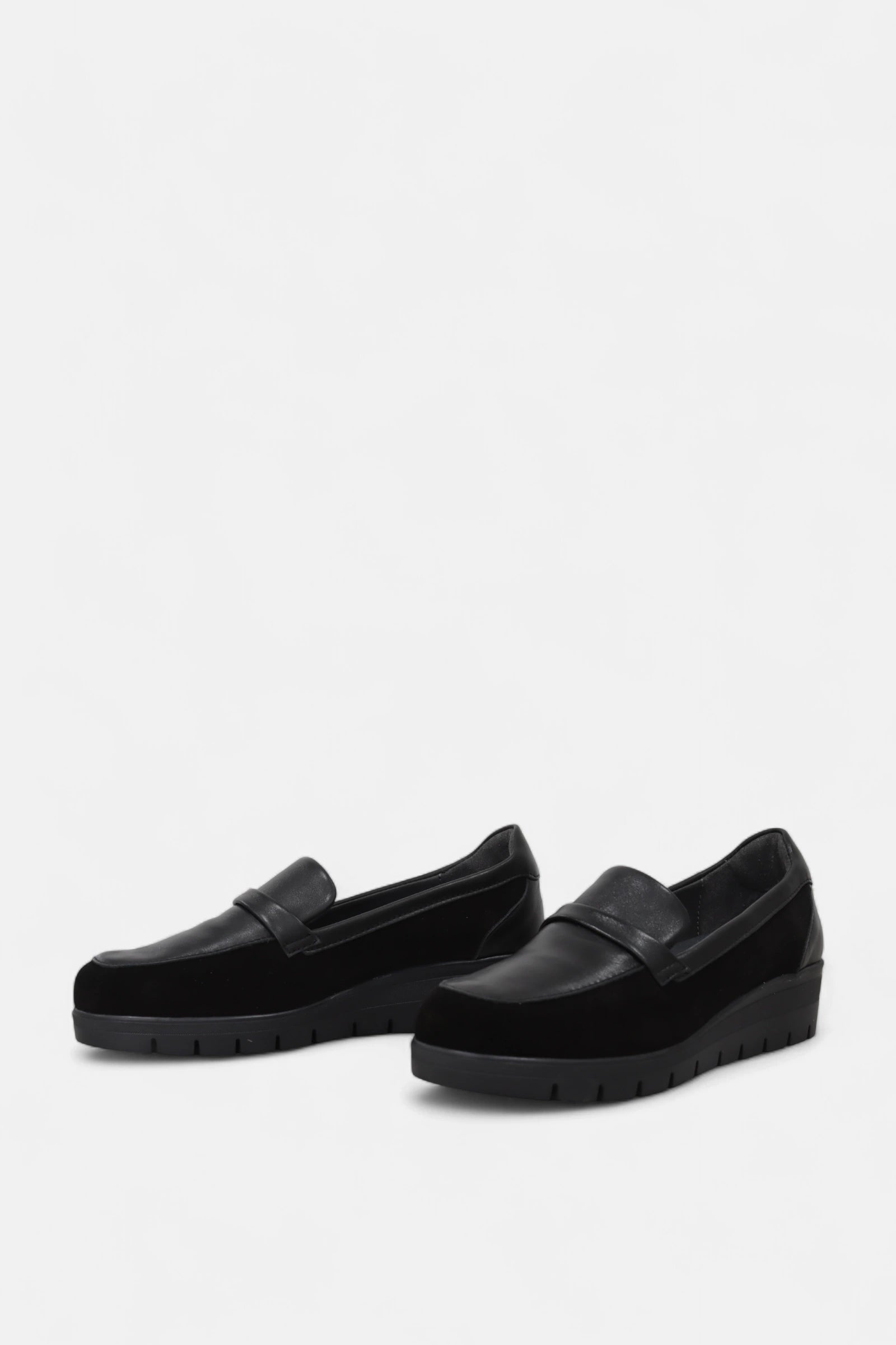 Sapatos mocassim de cunha em camurça e pele para mulher Daydoc Sevilha preto