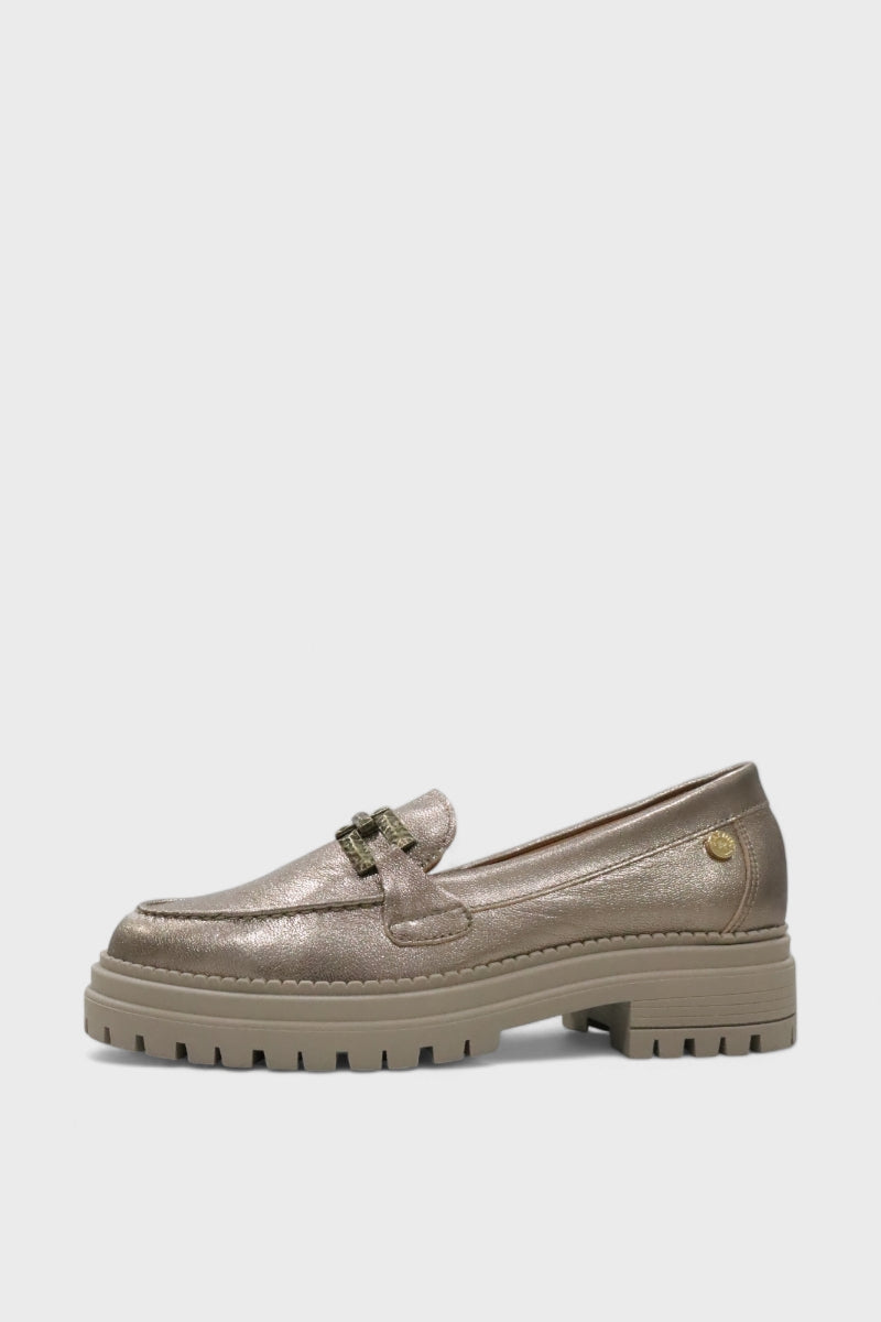 Estes práticos e confortáveis sapatos, em pele natural metalizada, de salto baixo de 4 cm, com sola de borracha dentada antiderrapante compensada em 2 cm, que te confere conforto, são ideais para quem gosta de primar pela jovialidade, apresentando-se com materiais metalizados, de excelente qualidade.