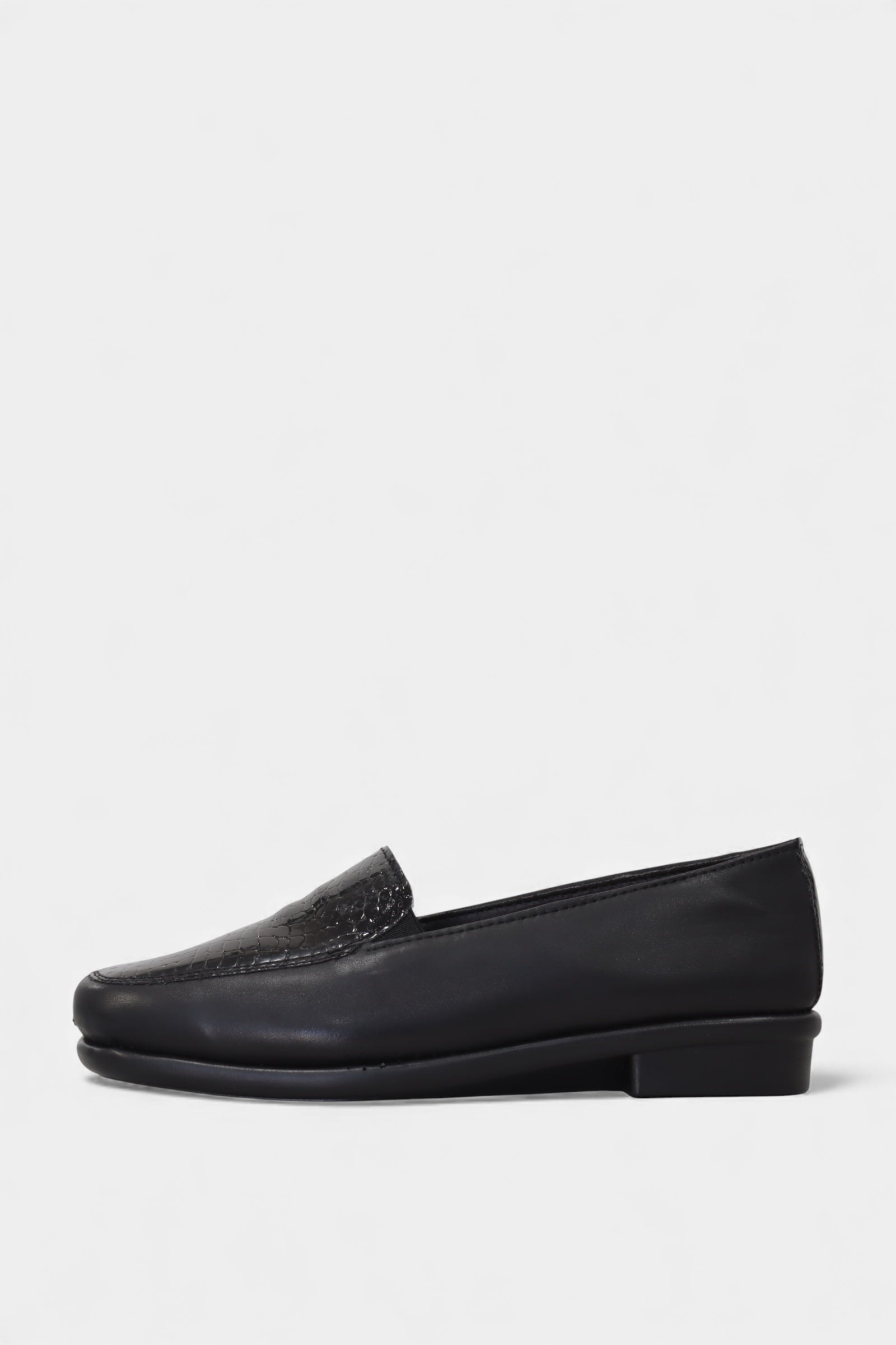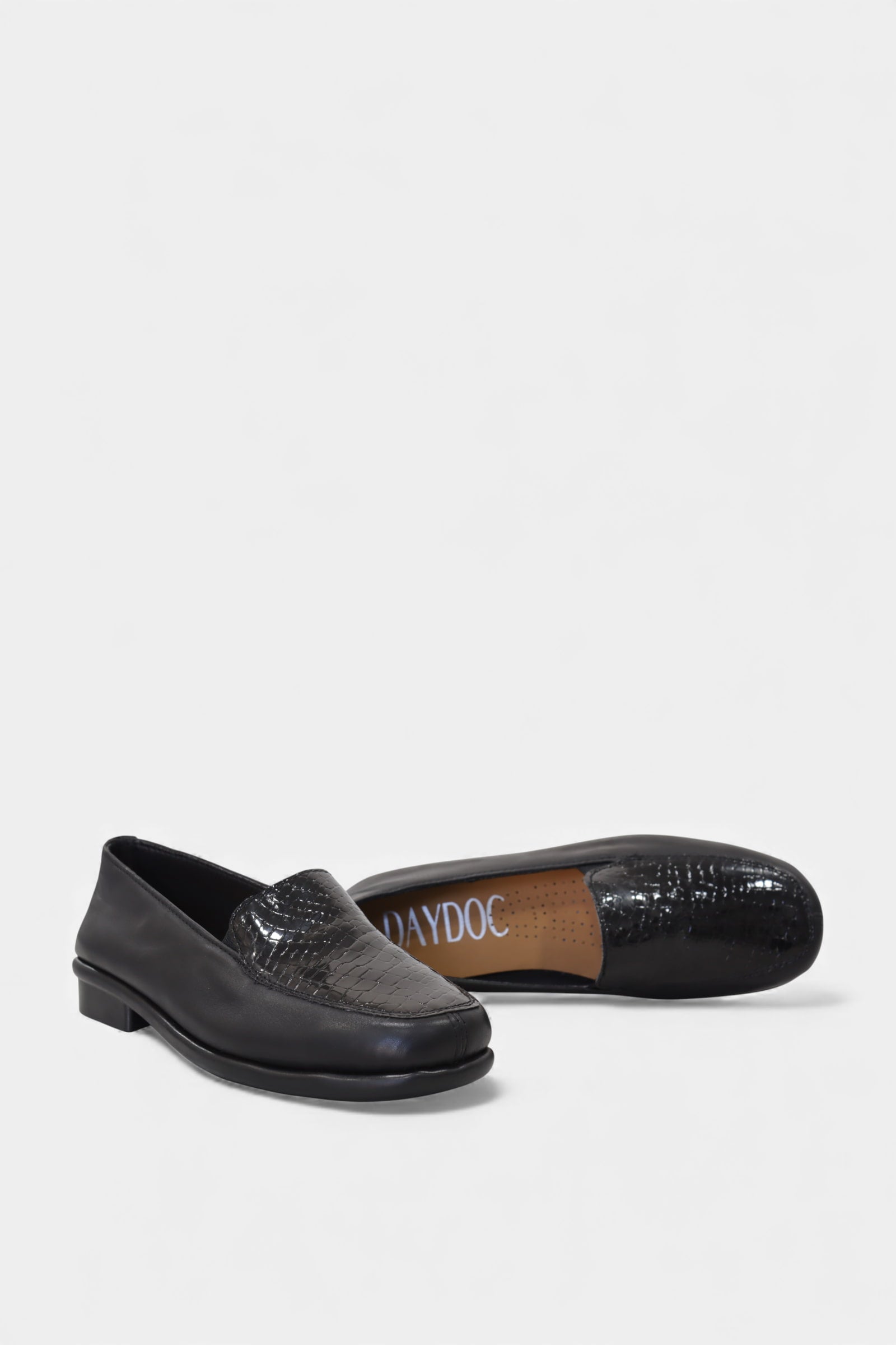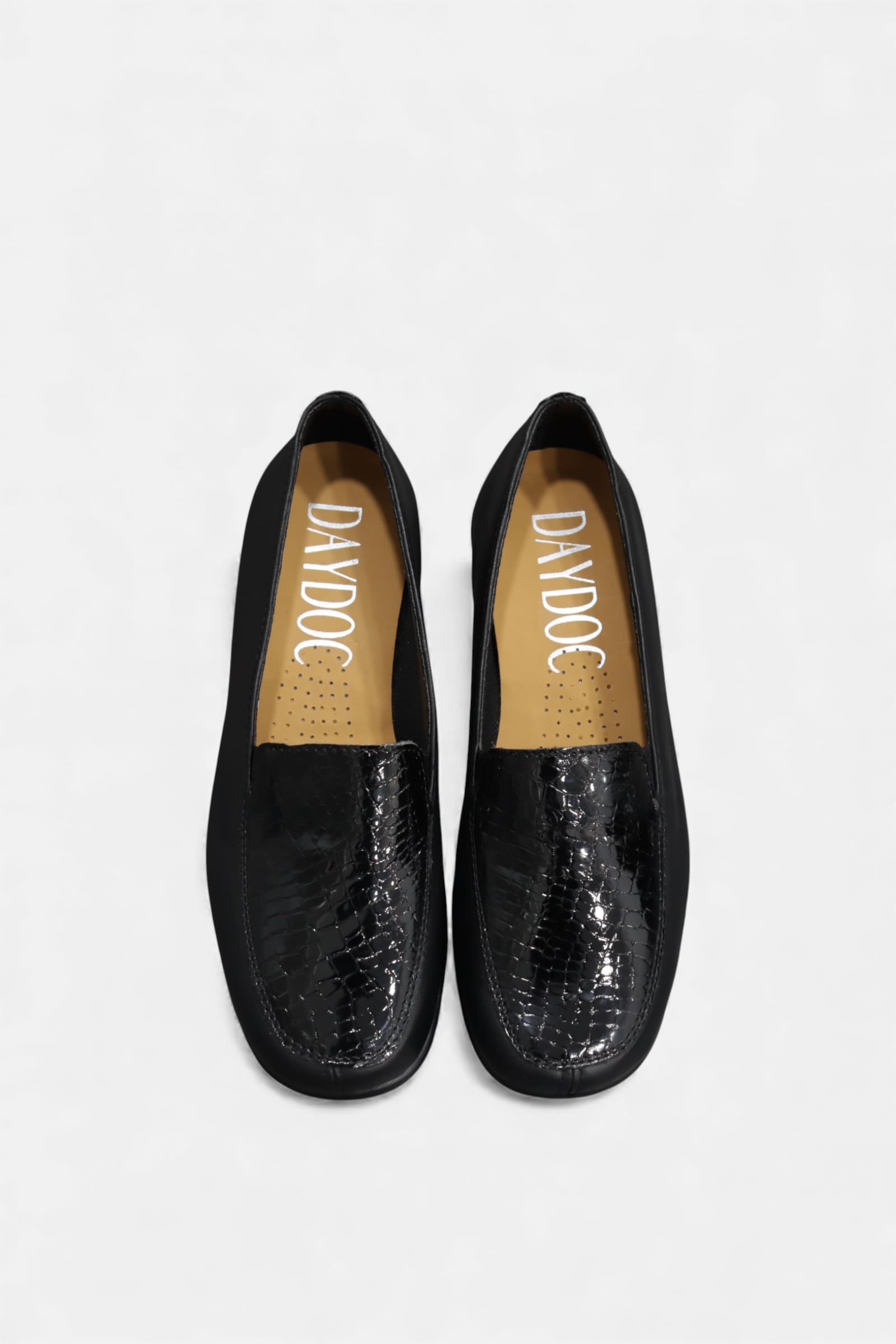 Descubra o conforto com estes sapatos em pele preta, desenhados para quem não pára. Com um requintado detalhe em verniz croco na parte frontal, oferecem um toque ligeiramente mais sofisticado.
