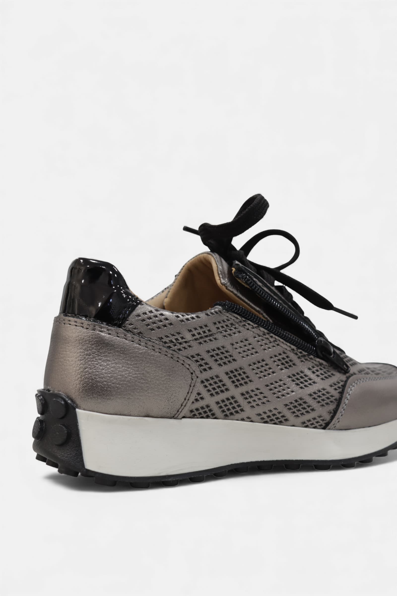 Ténis em Pele Metalizada Chumbo com Fecho | Daydoc VAGOS 681MF