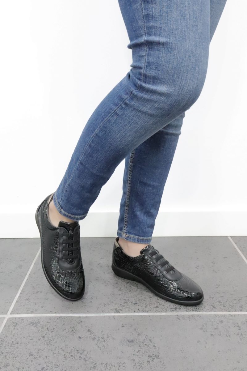 Modelo desportivo muito confortável, produzido com materiais de excelência, ideal para quem passa muito tempo em pé. Sola com plantar largo. Muito fáceis de calçar pois têm elásticos no peito do pé.