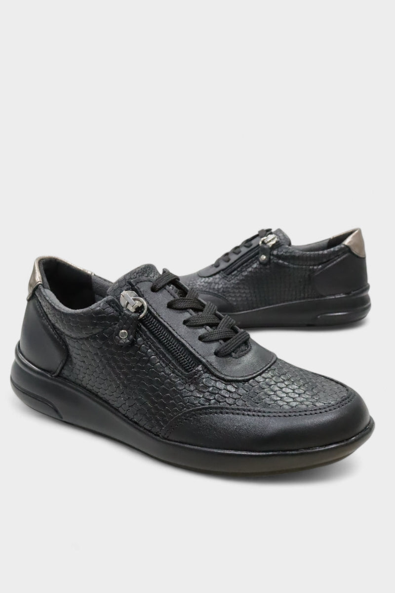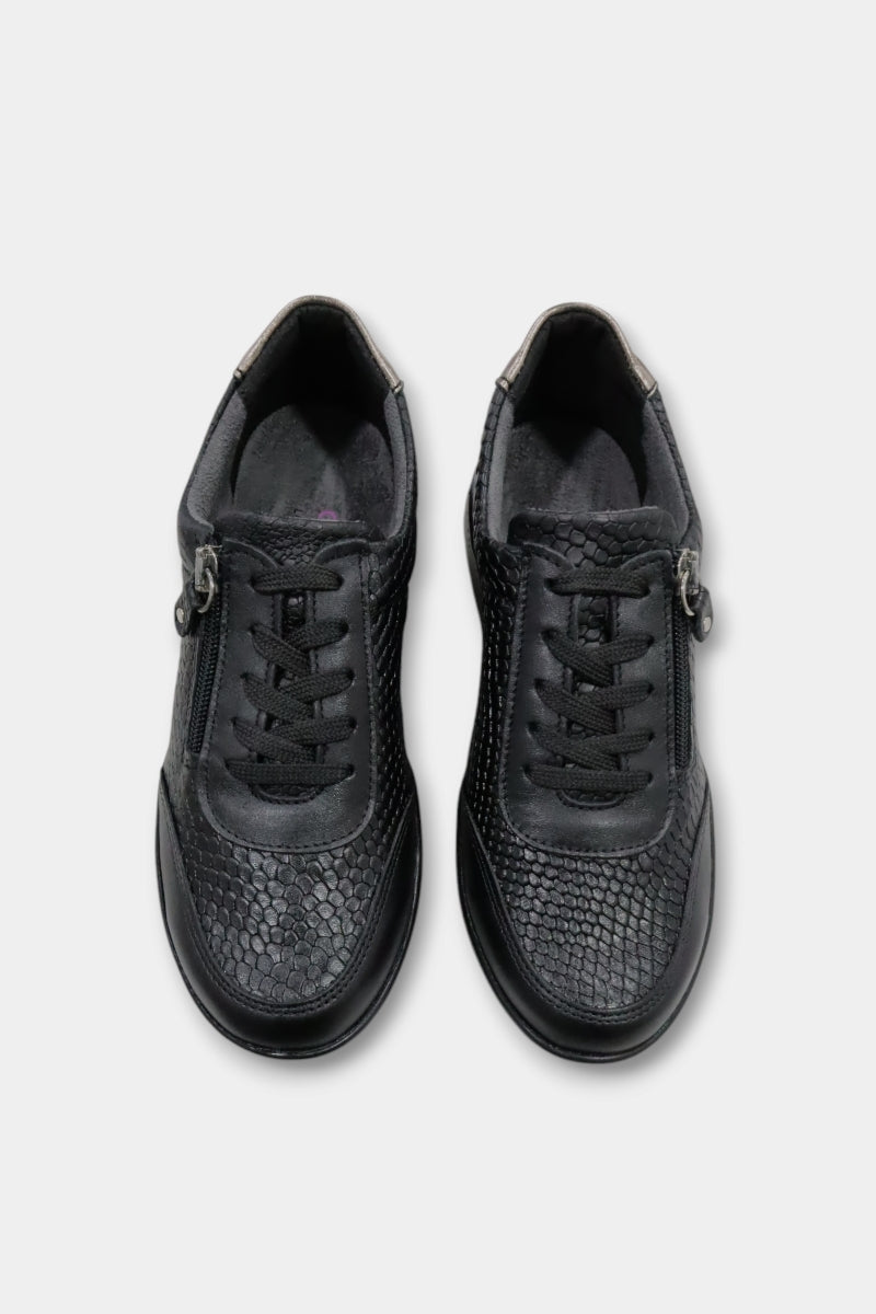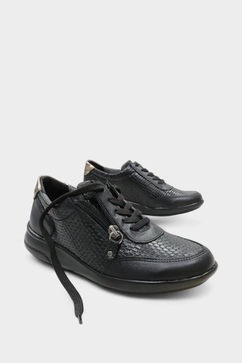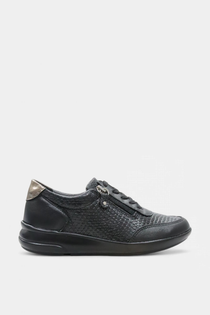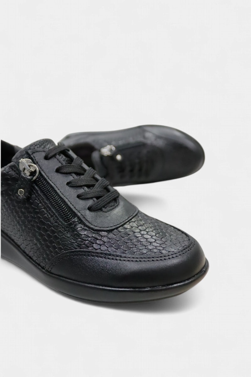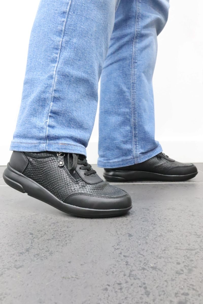 Modelo desportivo muito confortável, produzido com materiais de excelência, com plantar largo, ideal para quem passa muito tempo em pé. Aperta com cordão e fecho, para maior comodidade.